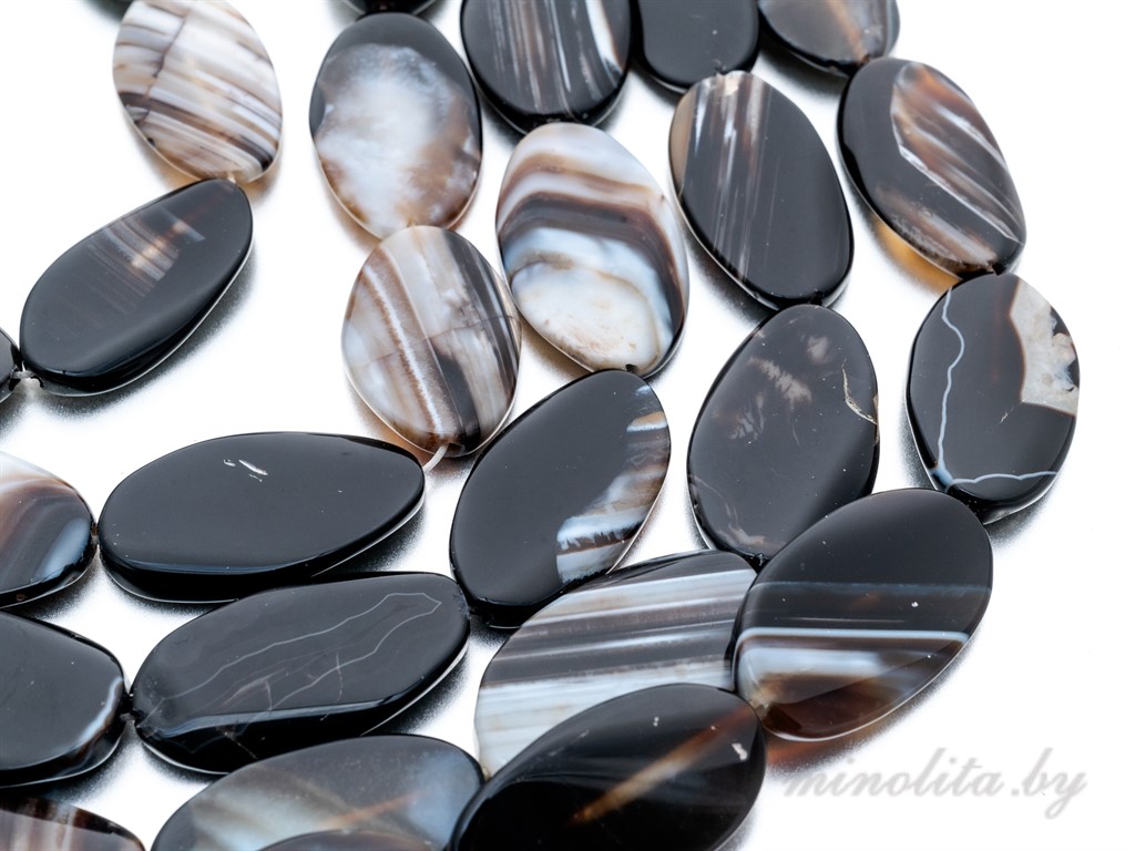 Покупайте по лучшей цене в Минске натуральный камень агат 15-65 поштучно. Размер: 40 х 20 мм. Форма: овал. Цвет: черный
