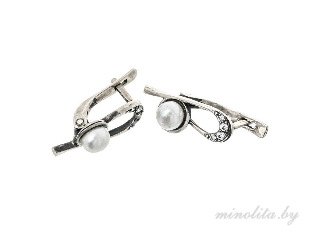 Серьги из серебра 925 пробы. Вставка жемчуг. О наличии в продаже этого украшения, а так же необходимого размера уточняйте по тел. +375-29-140-04-84, +375-33-300-68-17. Чтобы забронировать серьги или оставить заявку на их изготовление, напишите на почту info@minolita.by , указав артикул ювелирного изделия и свои контактные данные. В течение 24-х часов наш менеджер свяжется с Вами.