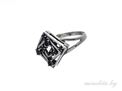 Кольцо ажурное из серебра 925 пробы, с чернением. Вставка: цирконы черного цвета. О наличии в продаже этого украшения, а так же необходимого размера уточняйте по тел. +375-29-140-04-84, +375-33-300-68-17. Возможна вставка камня на выбор. Чтобы забронировать кольцо или оставить заявку на его изготовление, напишите на почту info@minolita.by , указав артикул и размер кольца, и свои контактные данные. В течение 24-х часов наш менеджер свяжется с Вами.