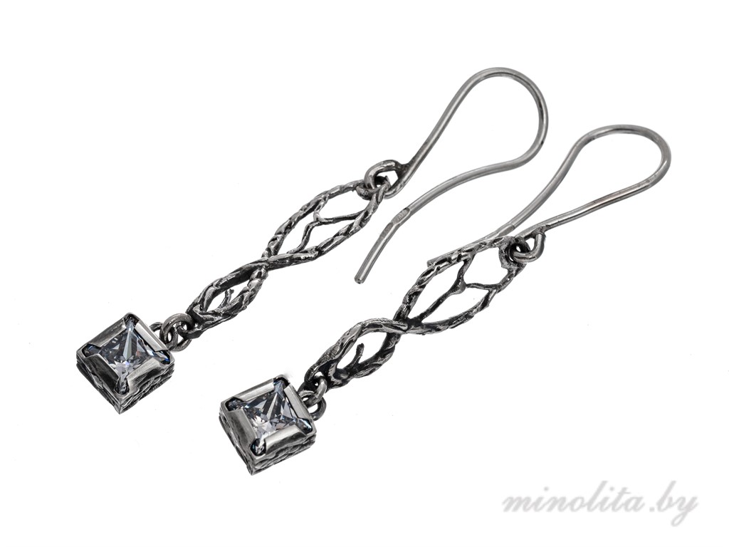 Серьги из серебра 925 пробы, с чернением. Вставка прозрачный циркон. О наличии в продаже этого украшения, а так же необходимого размера уточняйте по тел. +375-29-140-04-84, +375-33-300-68-17. Чтобы забронировать серьги или оставить заявку на их изготовление, напишите на почту info@minolita.by , указав артикул ювелирного изделия и свои контактные данные. В течение 24-х часов наш менеджер свяжется с Вами.