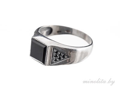 Кольцо мужское из серебра 925 пробы, с чернением. Вставка: черный оникс и цирконы черного цвета. О наличии в продаже этого украшения, а так же необходимого размера уточняйте по тел. +375-29-140-04-84, +375-33-300-68-17. Возможна вставка камня на выбор. Чтобы забронировать кольцо или оставить заявку на его изготовление, напишите на почту info@minolita.by , указав артикул и размер кольца, и свои контактные данные. В течение 24-х часов наш менеджер свяжется с Вами.