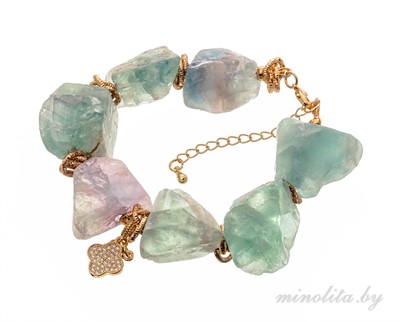 Браслет 2-234 Аквамарин,роз.кварц,лунн.камень