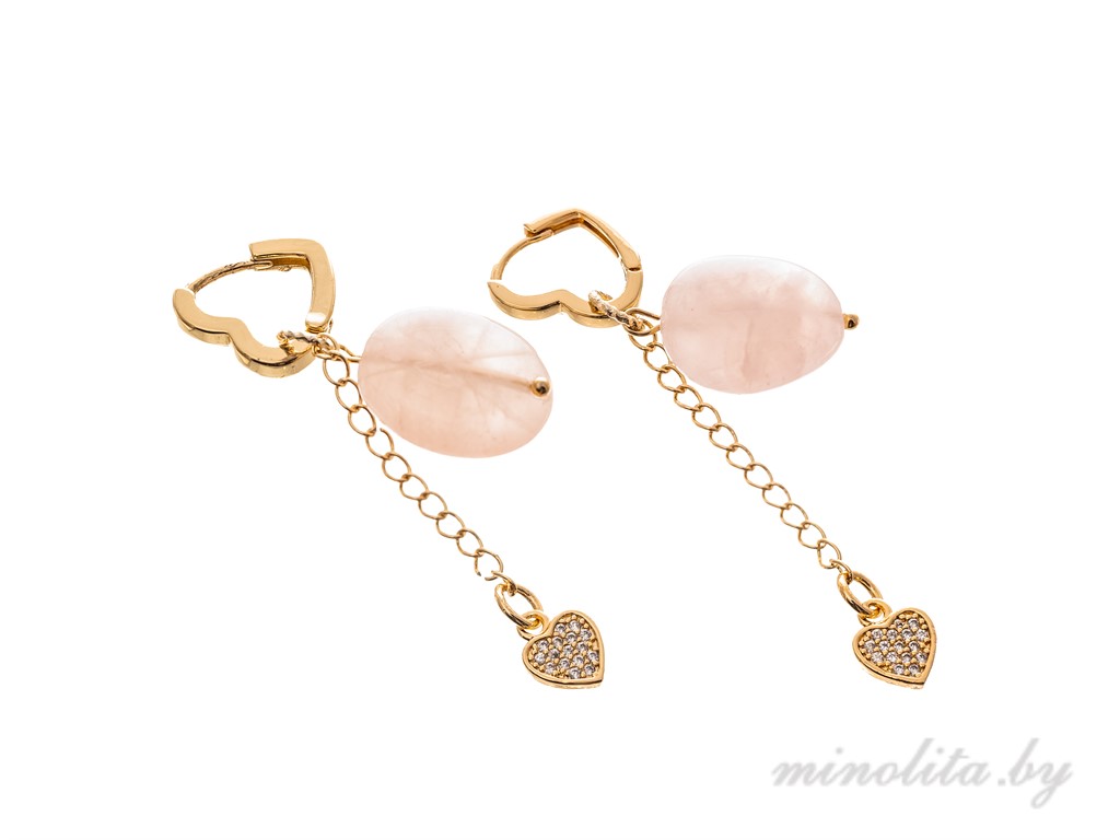 Серьги 03-194 Розовый кварц.