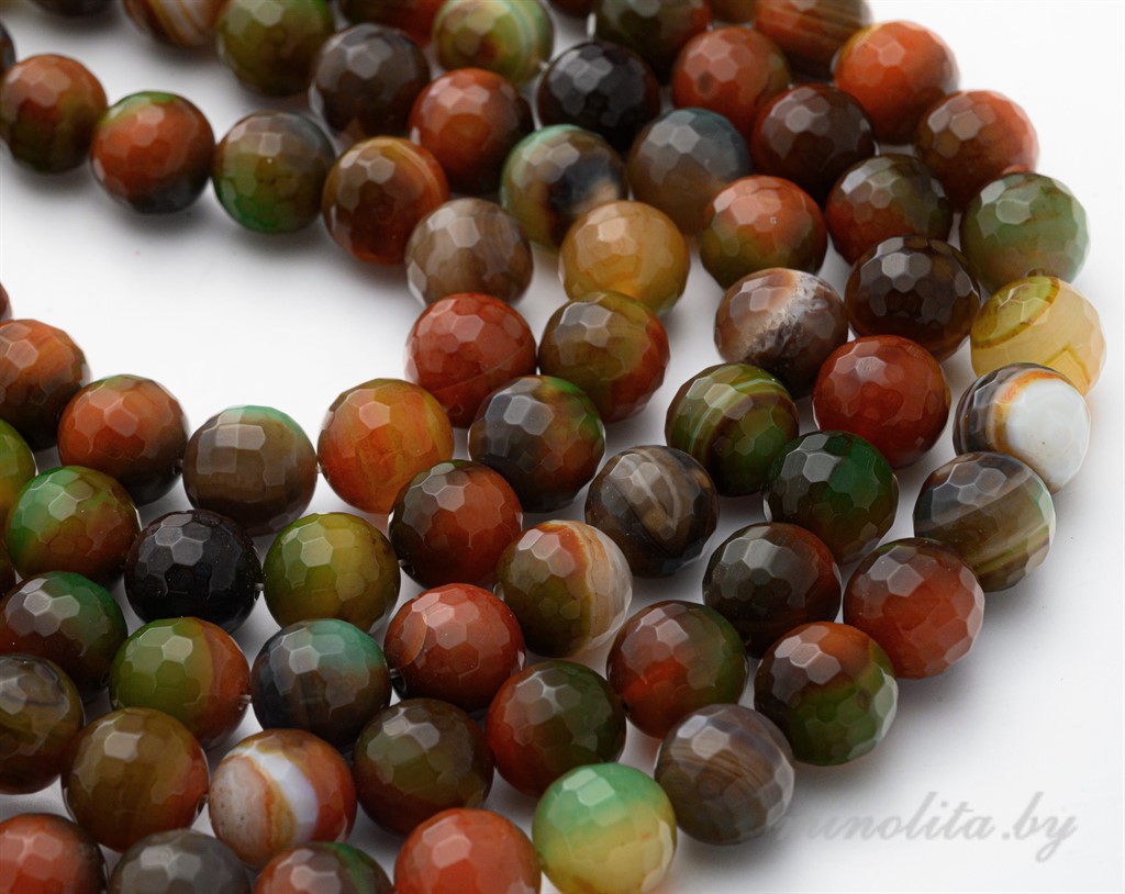 Бусины натурального камня агат. Размер 12 мм. Форма: шар. Цвет: зеленый и коричневый