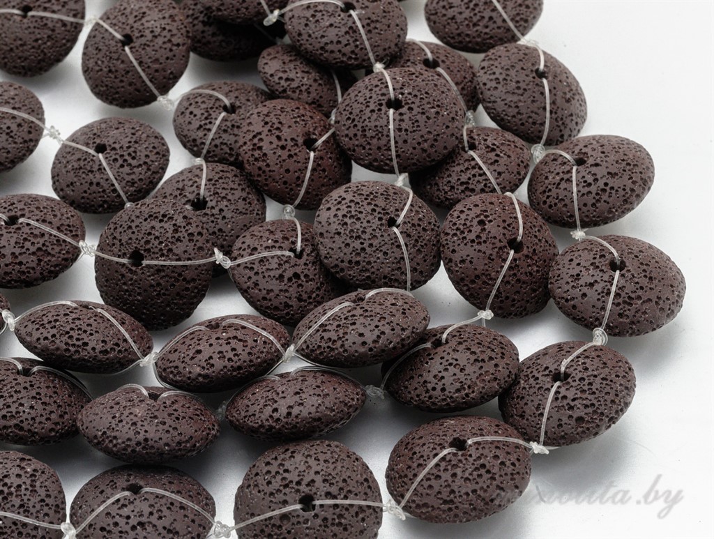 Покупайте по лучшей цене в Минске лаву вулканическую. Размер: 26 х 12 мм. Цвет: коричневый. Бусины выпуклые, диски большие
