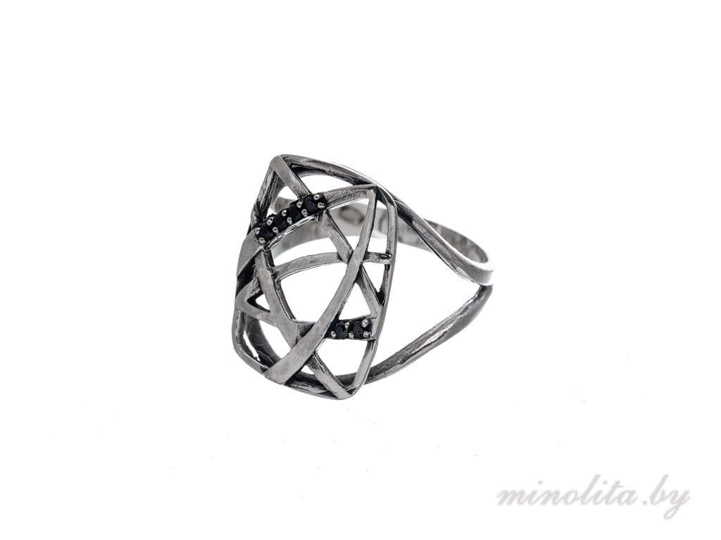 Кольцо ажурное из серебра 925 пробы, с чернением. Вставка: цирконы черного цвета. Приблизительный вес 2,80 грамма. О наличии в продаже этого украшения, а так же необходимого размера уточняйте по тел. +375-29-140-04-84, +375-33-300-68-17. Возможна вставка камня на выбор. Чтобы забронировать кольцо или оставить заявку на его изготовление, напишите на почту info@minolita.by , указав артикул и размер кольца, и свои контактные данные. В течение 24-х часов наш менеджер свяжется с Вами.