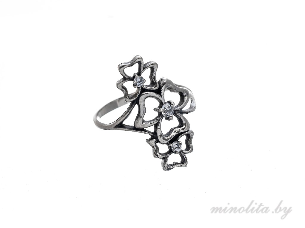 Кольцо ажурное из серебра 925 пробы, с чернением. Вставка: цирконы белого цвета. О наличии в продаже этого украшения, а так же необходимого размера уточняйте по тел. +375-29-140-04-84, +375-33-300-68-17. Возможна вставка камня на выбор. Чтобы забронировать кольцо или оставить заявку на его изготовление, напишите на почту info@minolita.by , указав артикул и размер кольца, и свои контактные данные. В течение 24-х часов наш менеджер свяжется с Вами.