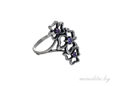 Кольцо ажурное из серебра 925 пробы, с чернением. Вставка: цирконы фиолетового цвета. грамма. О наличии в продаже этого украшения, а так же необходимого размера уточняйте по тел. +375-29-140-04-84, +375-33-300-68-17. Возможна вставка камня на выбор. Чтобы забронировать кольцо или оставить заявку на его изготовление, напишите на почту info@minolita.by , указав артикул и размер кольца, и свои контактные данные. В течение 24-х часов наш менеджер свяжется с Вами.