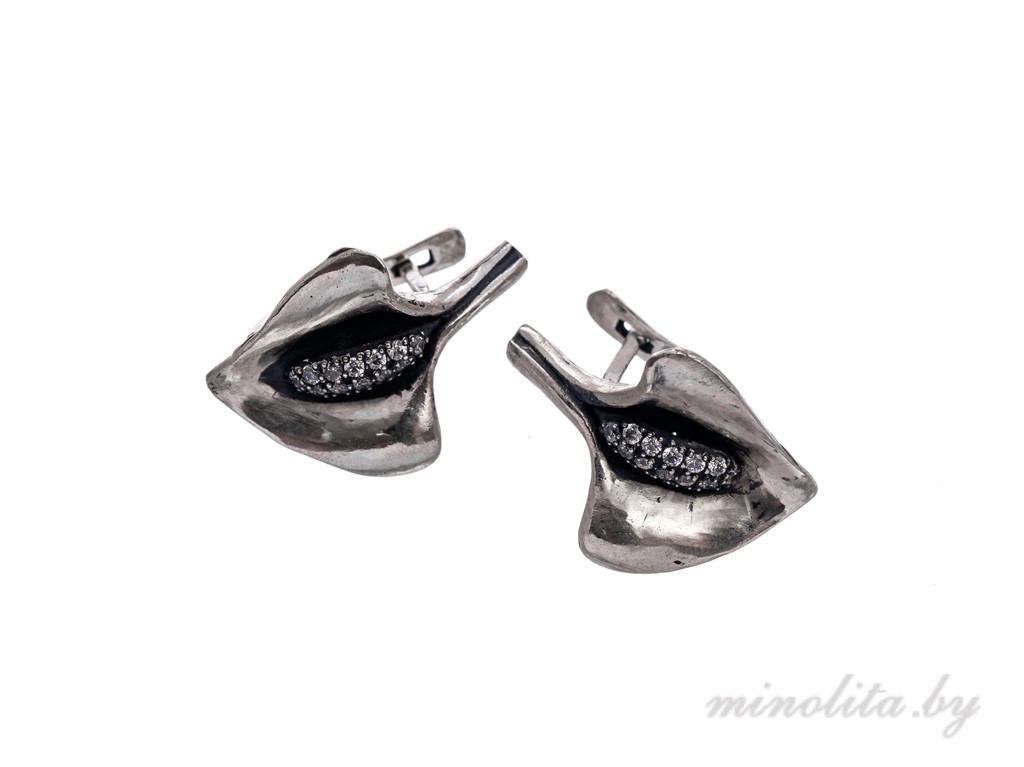 Серьги из серебра 925 пробы, с чернением. Вставка прозрачный циркон. О наличии в продаже этого украшения, а так же необходимого размера уточняйте по тел. +375-29-140-04-84, +375-33-300-68-17. Чтобы забронировать серьги или оставить заявку на их изготовление, напишите на почту info@minolita.by , указав артикул ювелирного изделия и свои контактные данные. В течение 24-х часов наш менеджер свяжется с Вами.